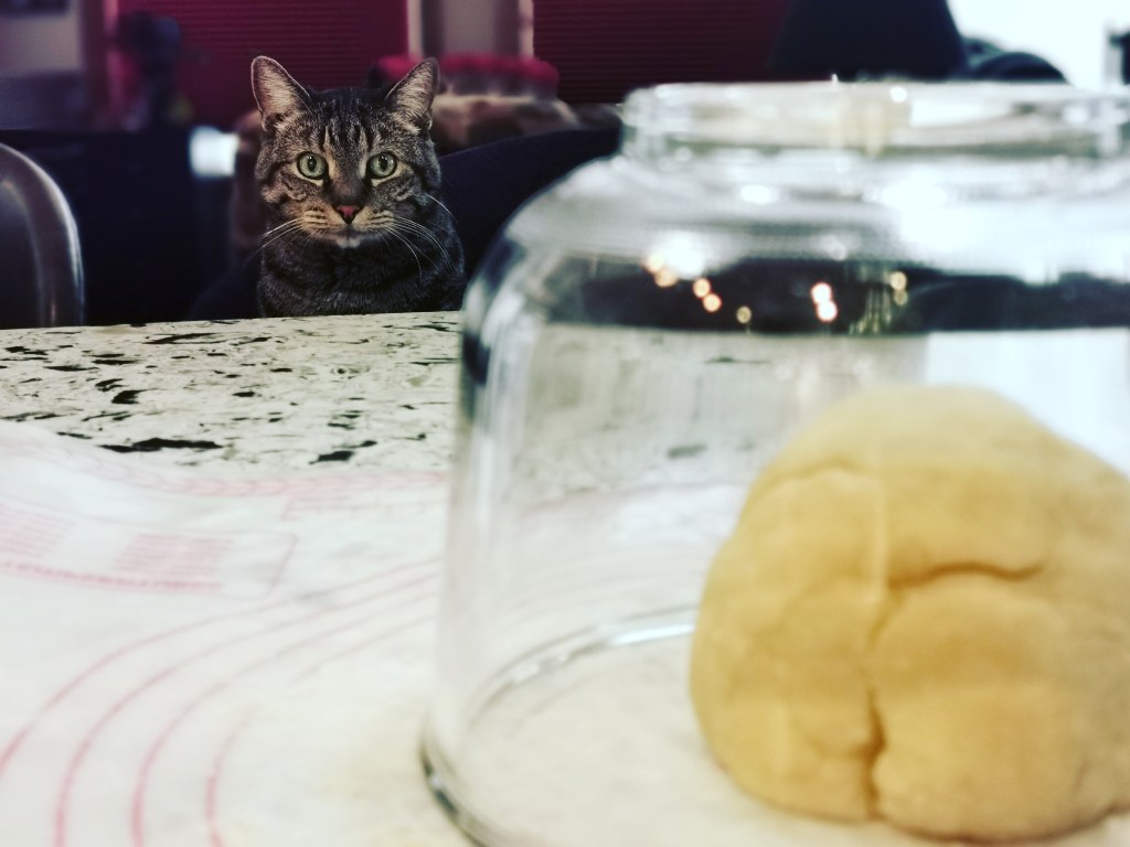Cover with mixing bowl and let rest for 15 minutes. Then cut the dough in half and roll each half out as thin as you can possibly make them. If you have a pasta maker, use it. It’s a fight to make them thin using only a rolling pin.