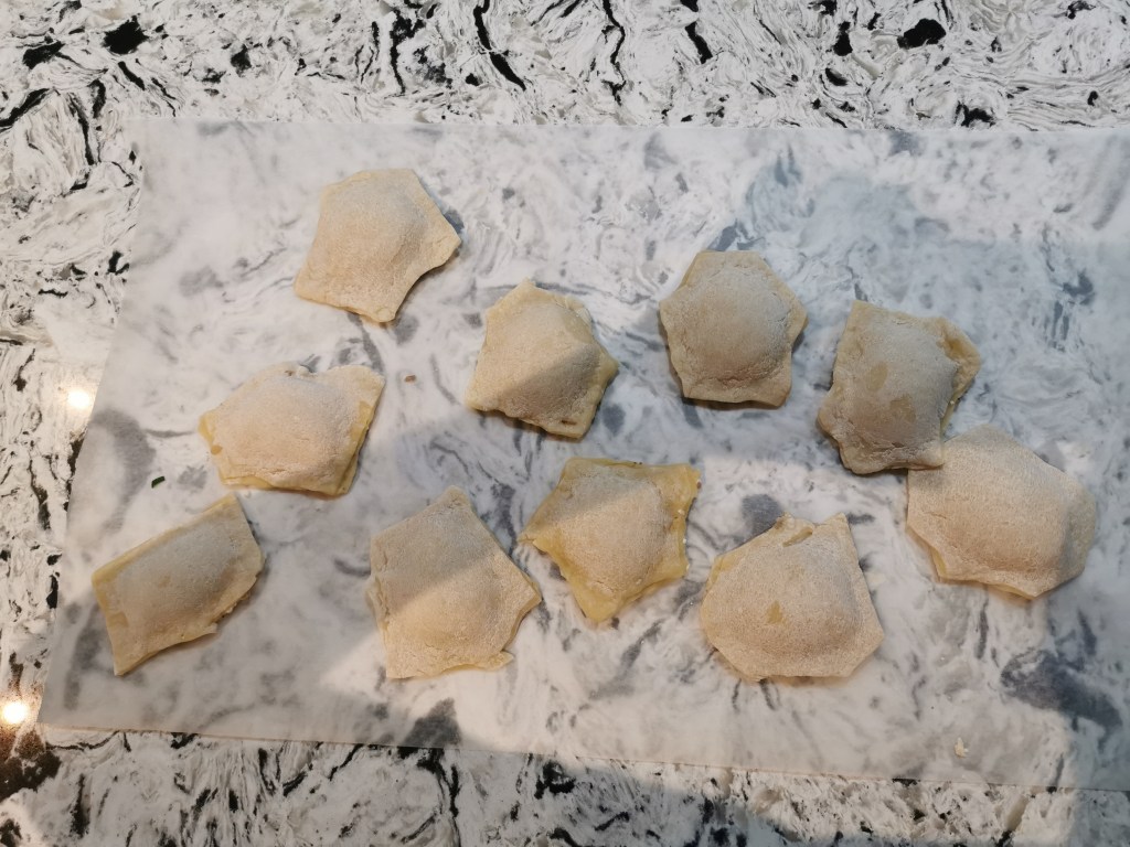 The pasta was very good but would be better if the dough was a little thinner. This could be achieved with a pasta maker. The Beer went perfectly with pasta with just enough tartness to fit with the shallots in the sauce and the goat cheese in the filling.