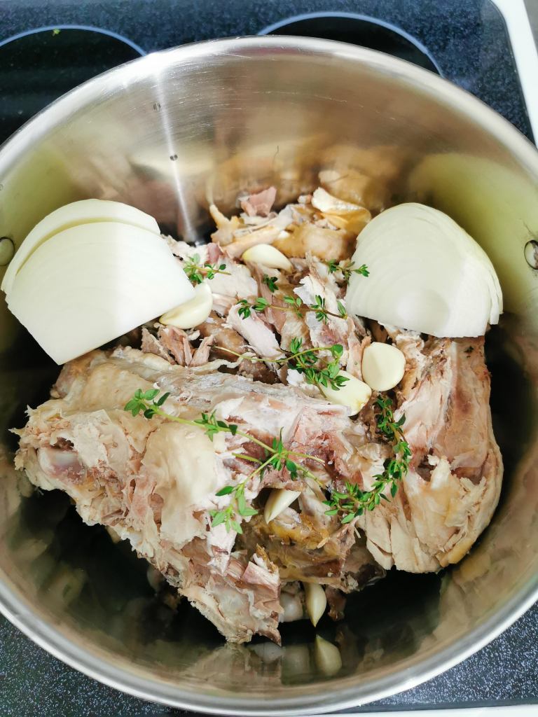 - Fill pot with water to just cover the carcass.