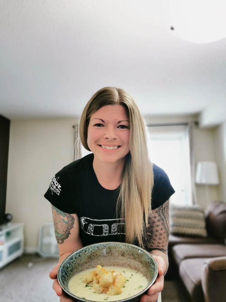- Serve with croutons and chives.