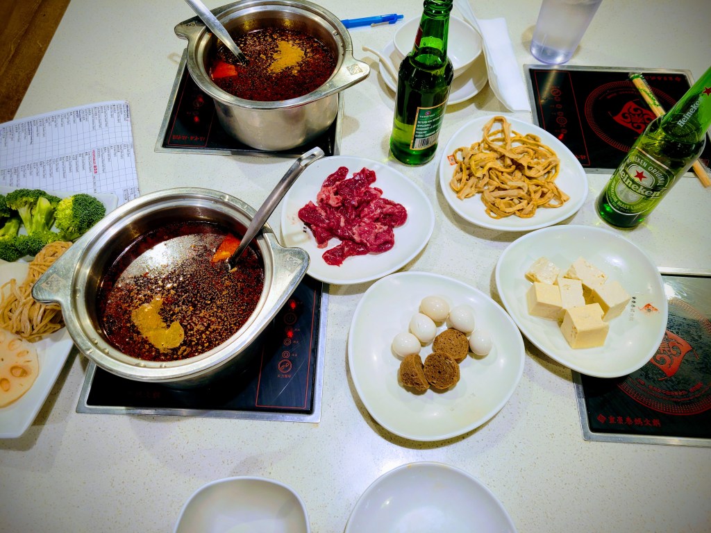 The concept is that you choose your broth, and then you choose what you would like to go in it to cook. They have a selection of 11 broths, ranging from mushroom, vegetable, chicken, beef, pork, and even spicy options. If you are sensitive to spice, I would recommend getting a non spicy broth and adding some chili oil from the sauce bar (You read that right, they have a sauce bar) to your own taste and tolerance. I got the mild legendary spicy broth and it was plenty spicy for a seasoned professional like myself.